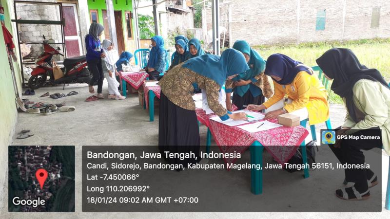 Sidorejo – Desa Sidorejo mendapatkan giliran pelaksanaan Sub Pekan Imunisasi Nasional (PIN) Polio oleh petugas Puskesmas Bandongan pada Kamis (18/1/2024) yang dilaksanakan di tiga posko yaitu di Dusun Jetak II, Dusun Timoho, dan Dusun Candi.