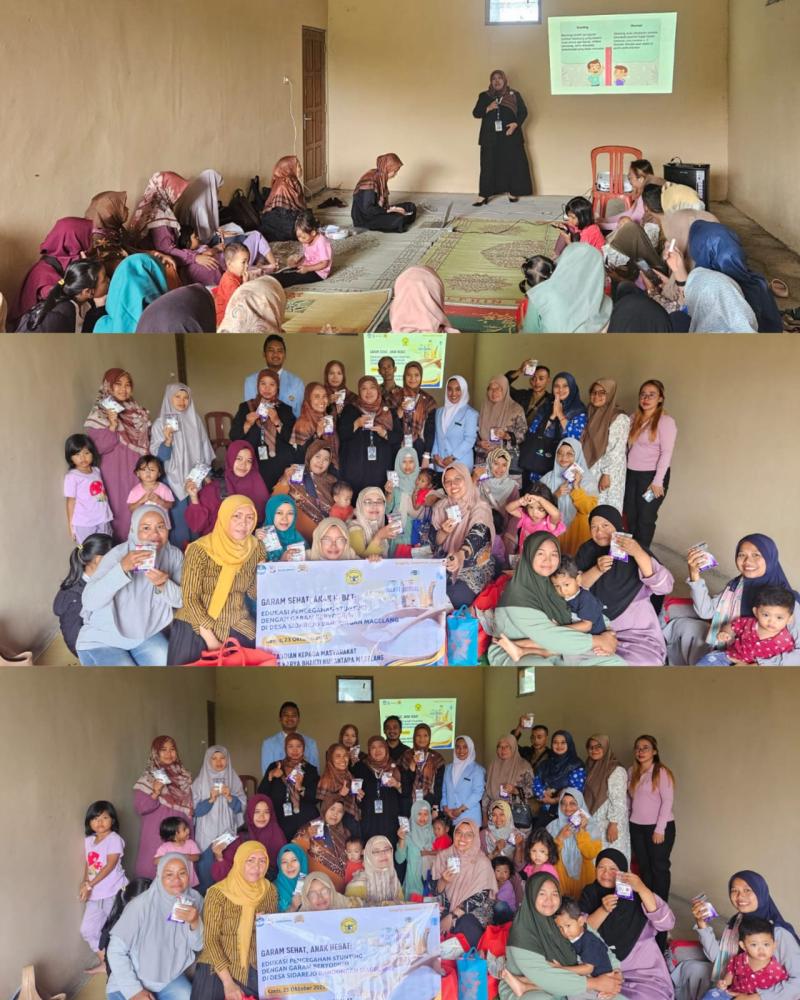 Stunting masih menjadi permasalahan kesehatan yang membutuhkan perhatian serius karena dapat mempengaruhi pertumbuhan fisik serta perkembangan kognitif anak. Kurangnya zat gizi mikro termasuk yodium menjadi salah satu faktor yang berkontribusi terhadap stunting. Oleh karena itu edukasi pada masyarakat terutama pada keluarga beresiko stunting menjadi langkah strategis dalam upaya pencegahan stunting di desa Sidorejo.